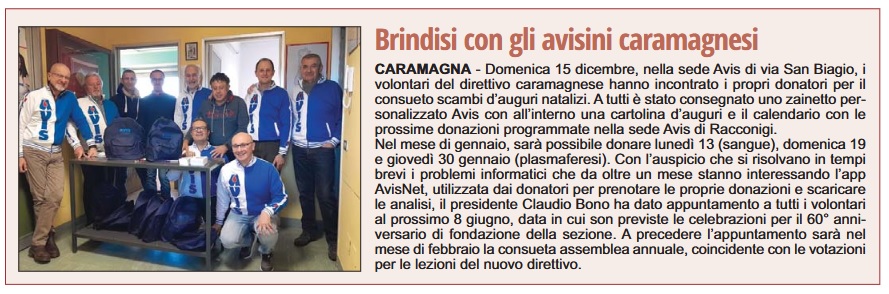 Corriere di Savigliano24 dicembre 2024 >>> torna alla rassegna stampaservizio gratuito realizzato da società solidale - centro servizi per il volontariato della provincia di cuneo per promuovere il volontariato e la cultura della solidarietànnormativeaaagenda e appuntamentitatrova associazionefformazionebfbandi e finanziamentiwnewsiscriviti alla newsletter<<<<<<<<<<<<<<<<<