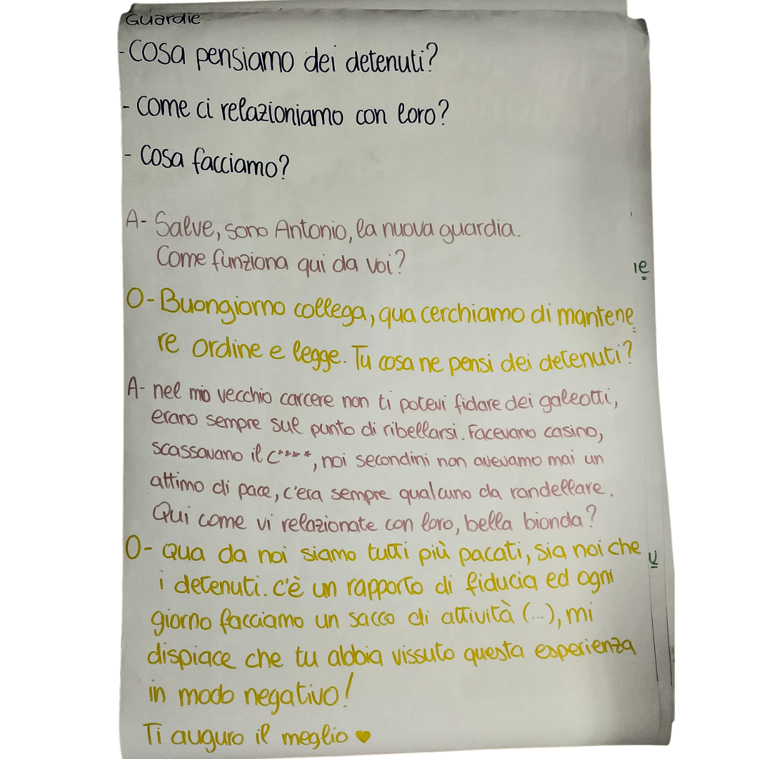 • L’empatia applicata: L’attività “Mettiti nei miei panni” ha offerto agli studenti l’opportunità di immedesimarsi nelle diverse figure che abitano la realtà carceraria (detenuti, familiari, agenti), permettendo loro di toccare con mano la complessità dei vissuti emotivi coinvolti.