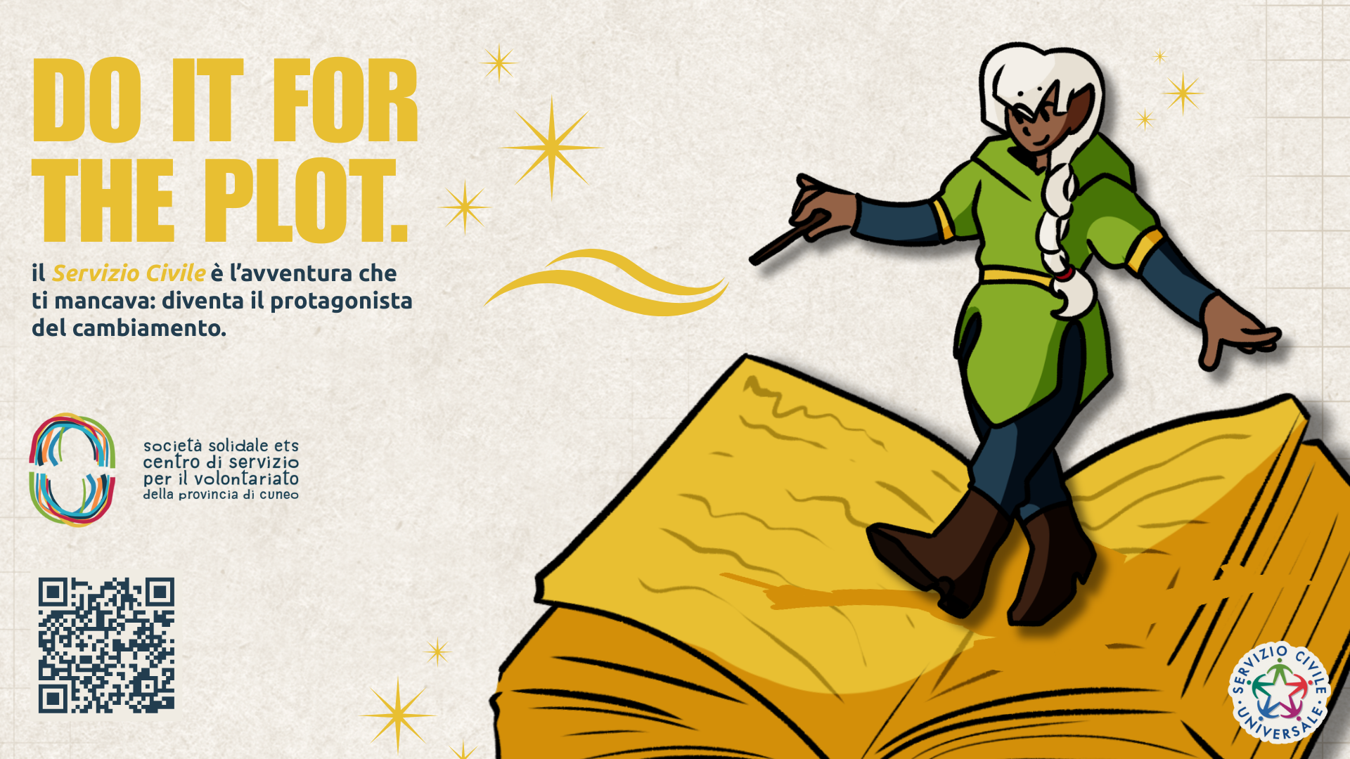 “Do it for the plot”, il CSV di Cuneo lancia un appello ai giovani, “il servizio civile è l’avventura che ti manca per costruire il tuo futuro”.