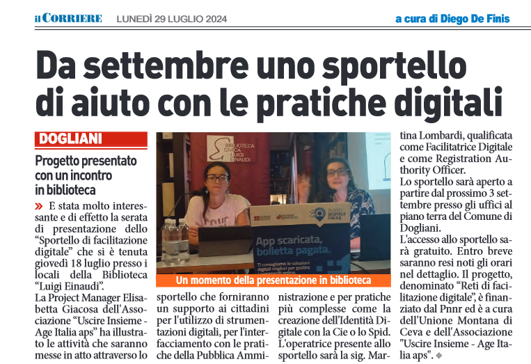 fr i aIL Il Corriere di Alba, Bra, Langhe, Roero29 luglio 2024 link all’articolo >>> torna alla rassegna stampaservizio gratuito realizzato da società solidale - centro servizi per il volontariato della provincia di cuneo per promuovere il volontariato e la cultura della solidarietànnormativeaaagenda e appuntamentitatrova associazionefformazionebfbandi e finanziamentiwnewsiscriviti alla newsletter<<<<<<<<<<<<<<<<<